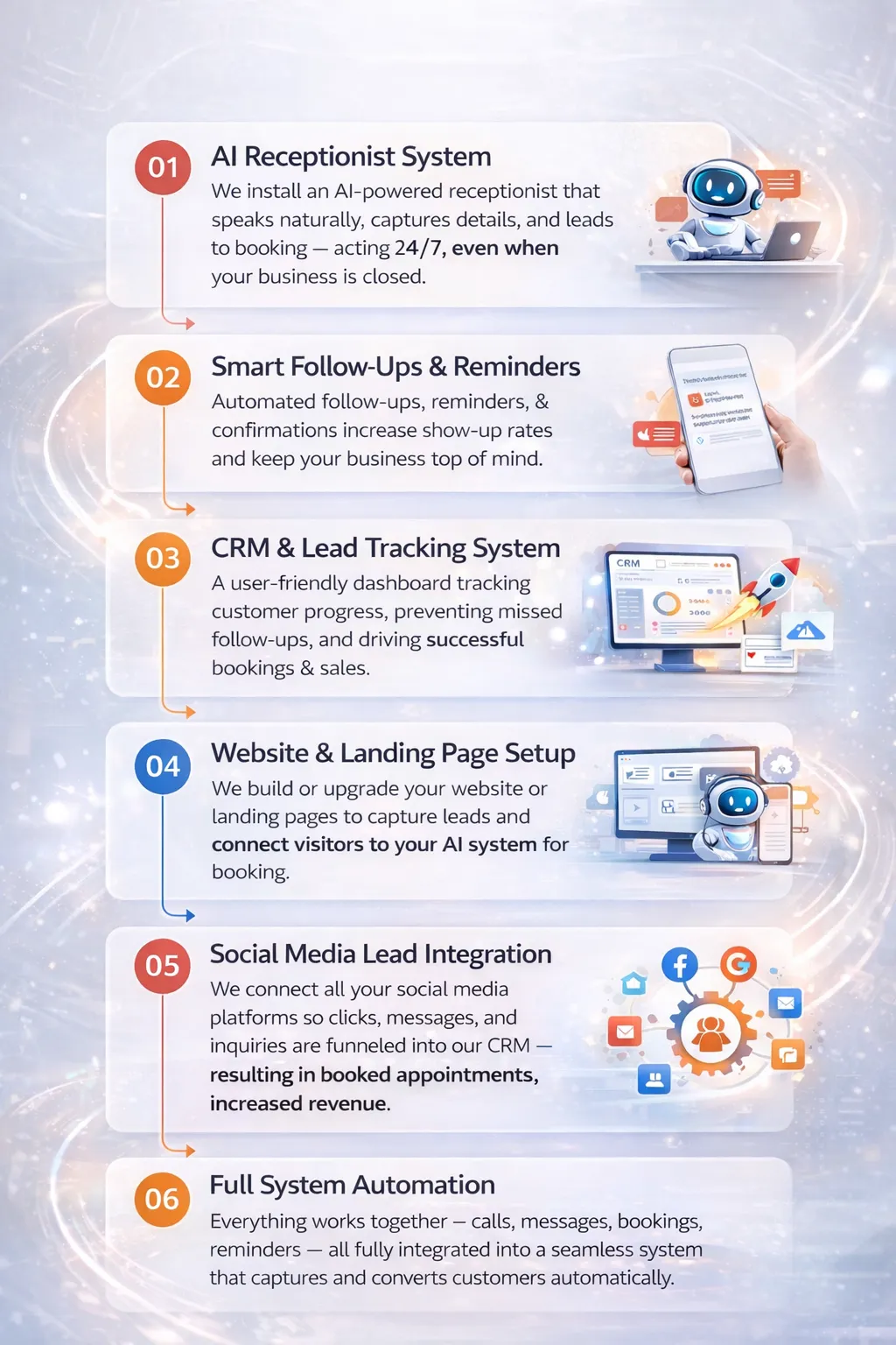 Convert calls, messages, and inquiries into confirmed appointments. Customers are guided through every step, driving consistent bookings and increasing revenue.