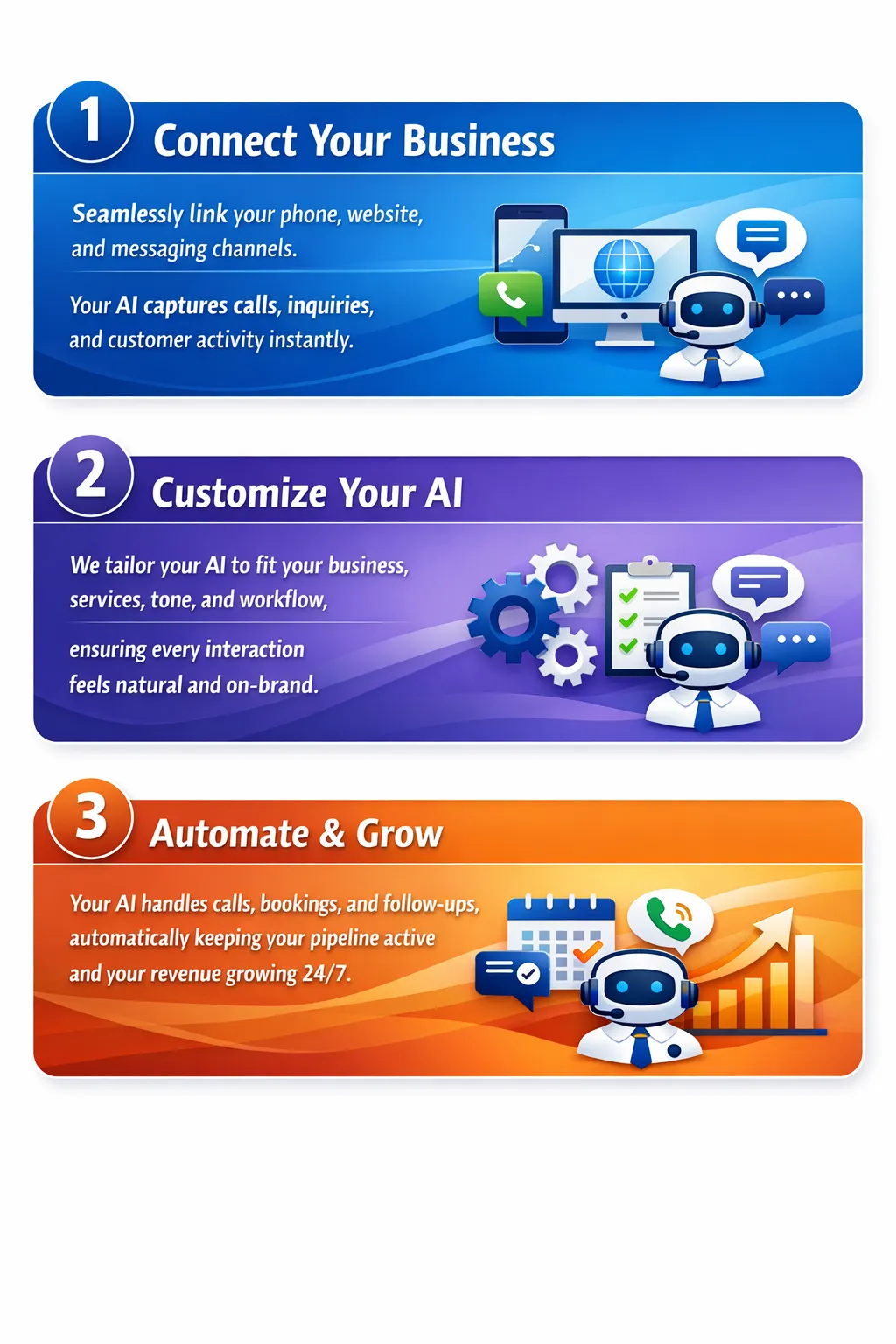 Let your AI handle every call, message and follow-up so you can focus on growing your business.